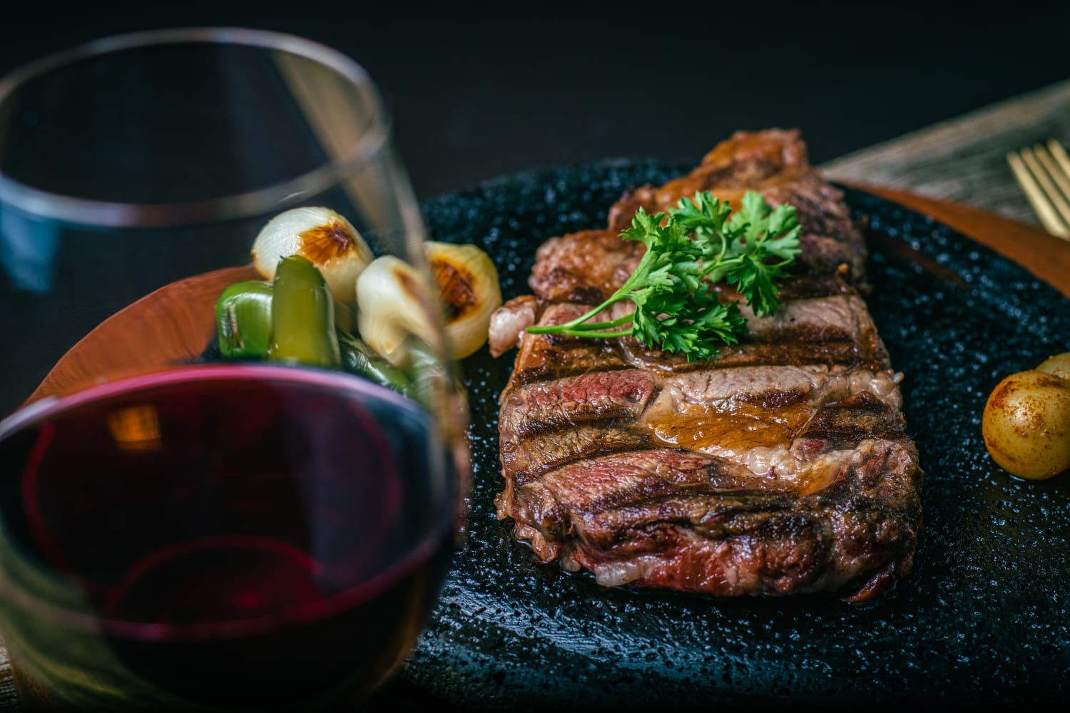 400g de carne T-bone acompañado con chiles toreados y cebolla cambray.