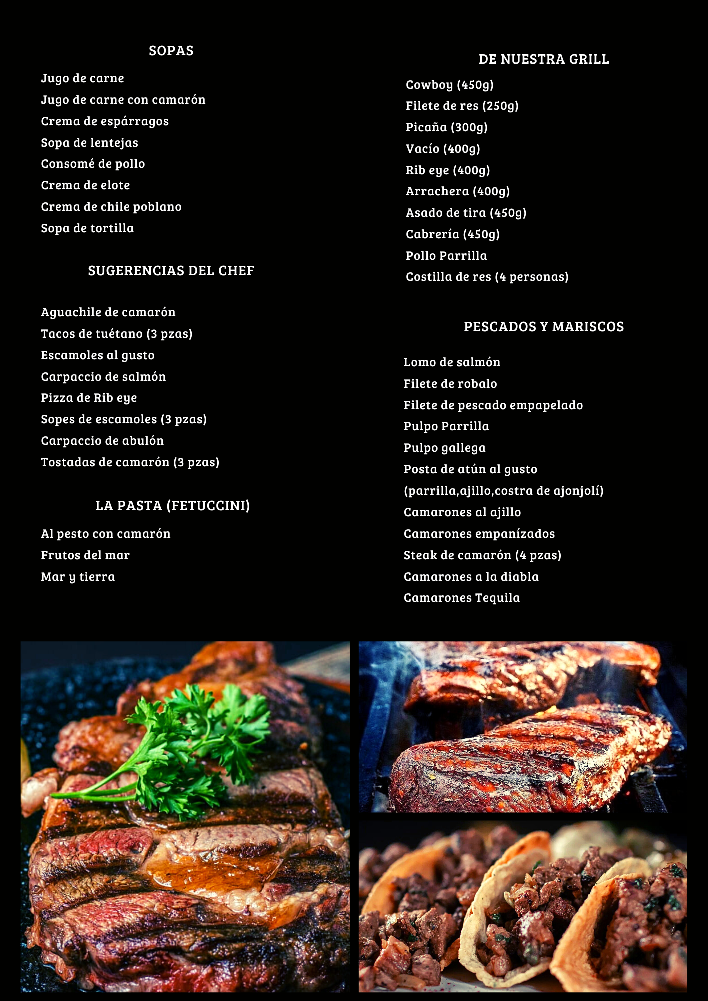 300g de carne Rib Eye en cubos, marinado en jugo de naranja, orégano, chupacabras, sal y pimienta. Acompañado de guarnición de guacamole.